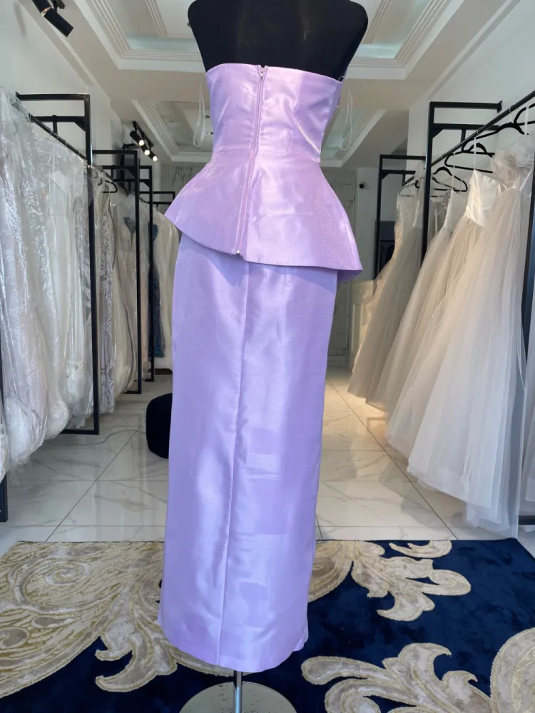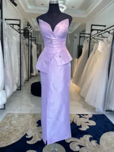 Ensemble top en bustier avec strass en fleurs et jupe droite avec fente...