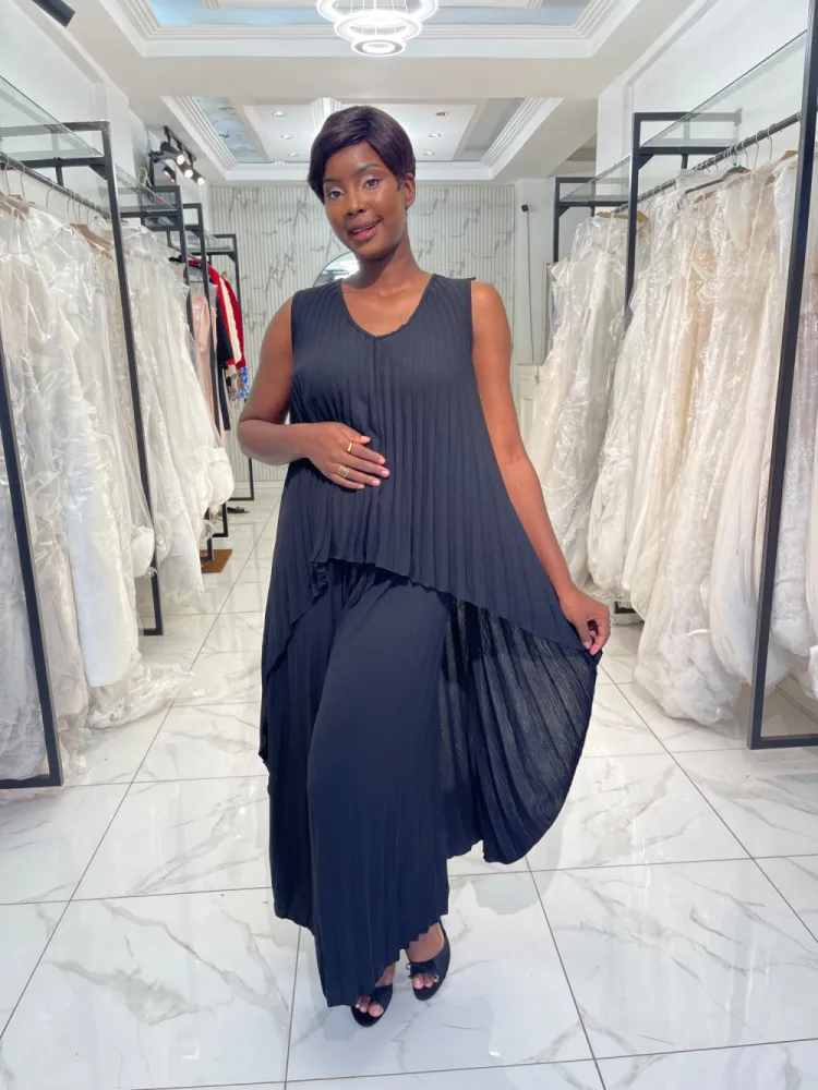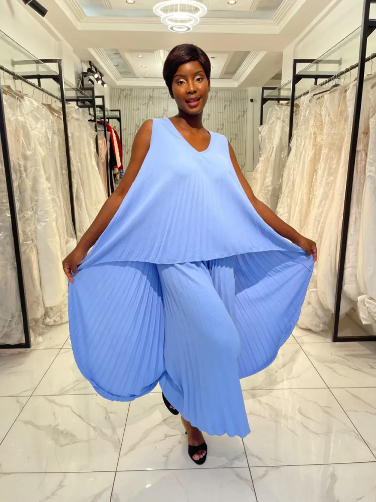 Ensemble léger blouse décalée avec pantacourt plissée...