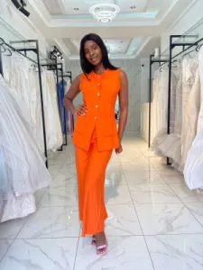 Ensemble jaune poussin/orange/saumon débardeur fluide et pantalon...