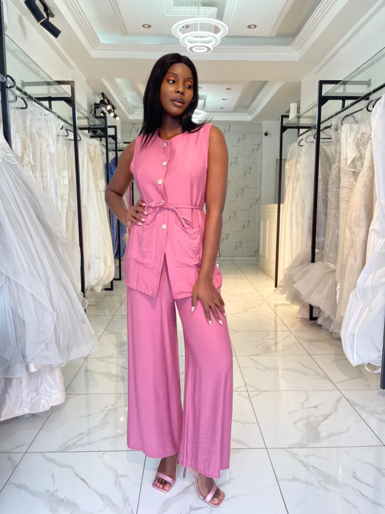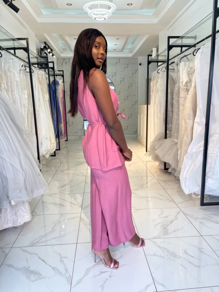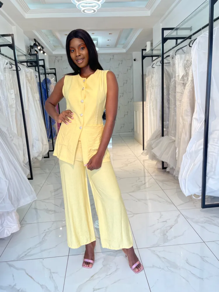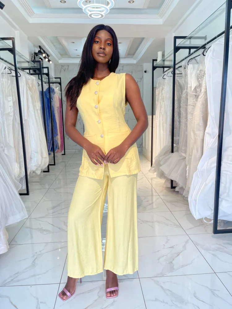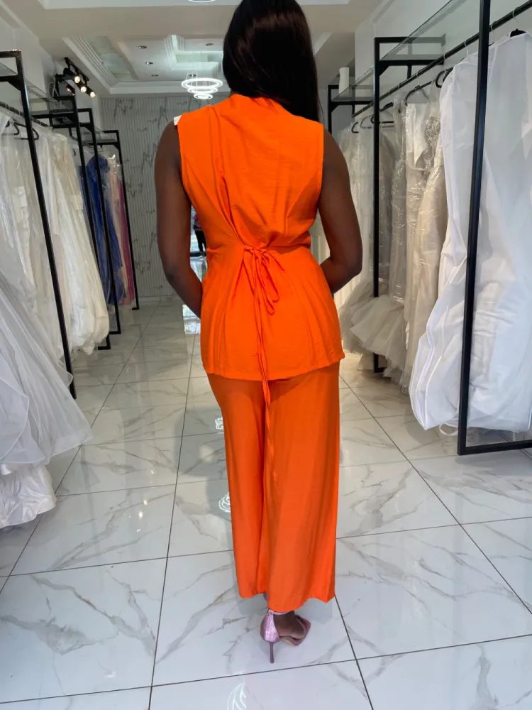 Ensemble jaune poussin/orange/saumon débardeur fluide et pantalon