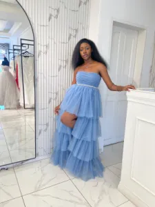 Robe couleur bleu turquoise ouverture a l’avant et longue en arrière,bustier ajustable...
