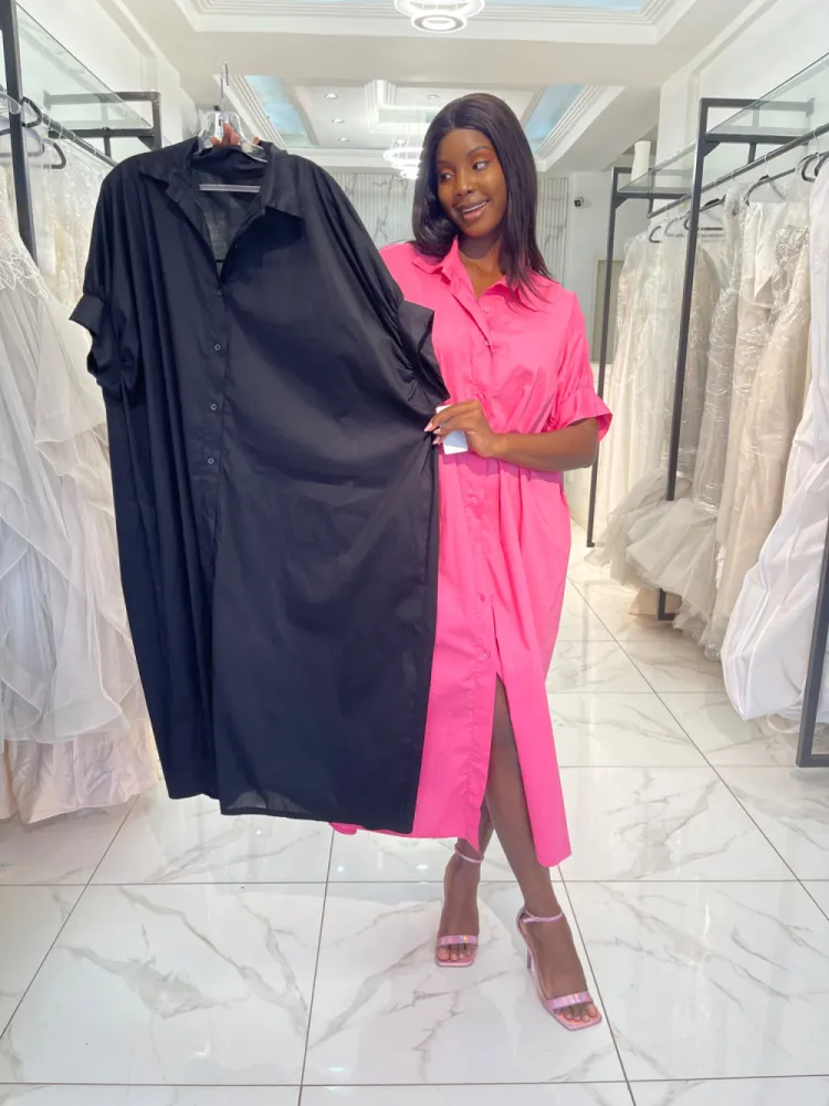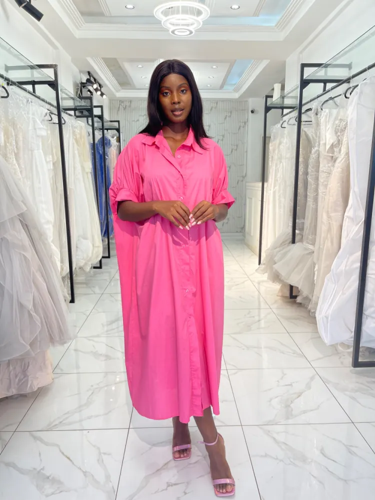 Robe longue style chemise manche chauve souris