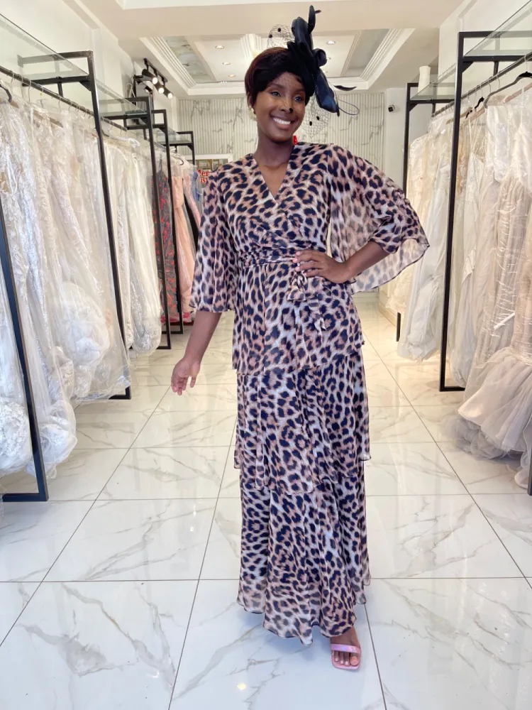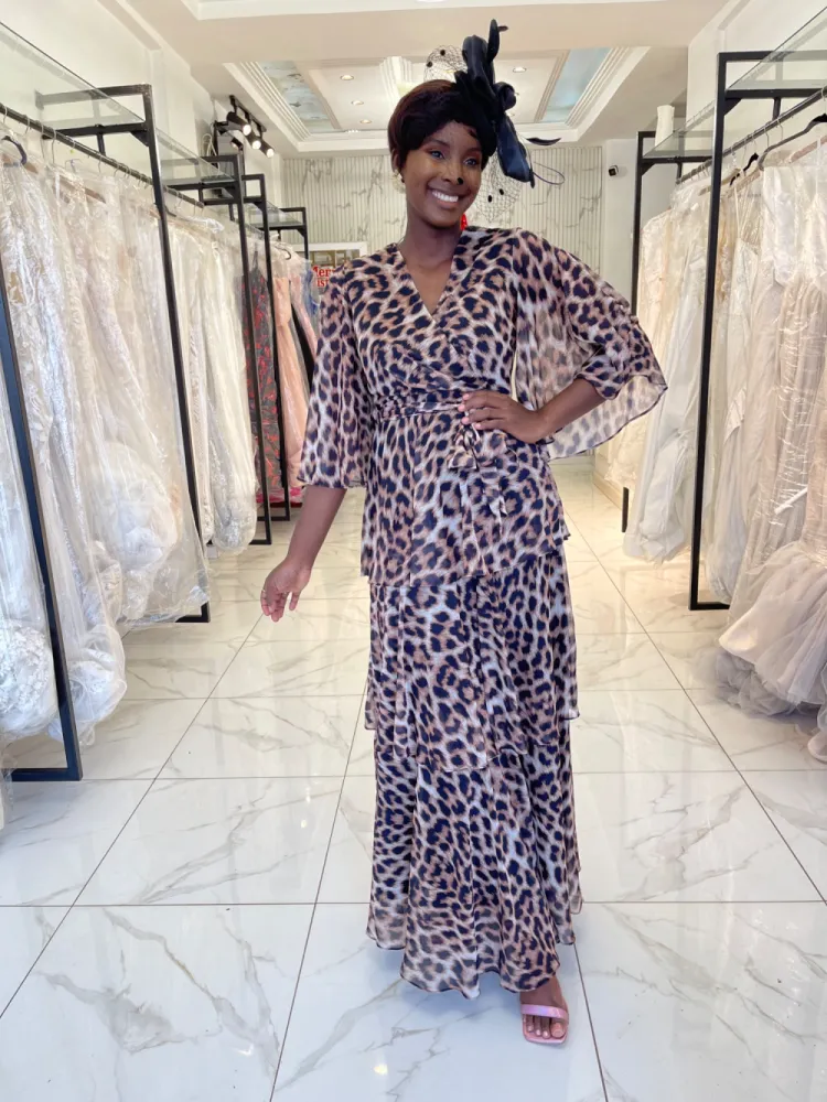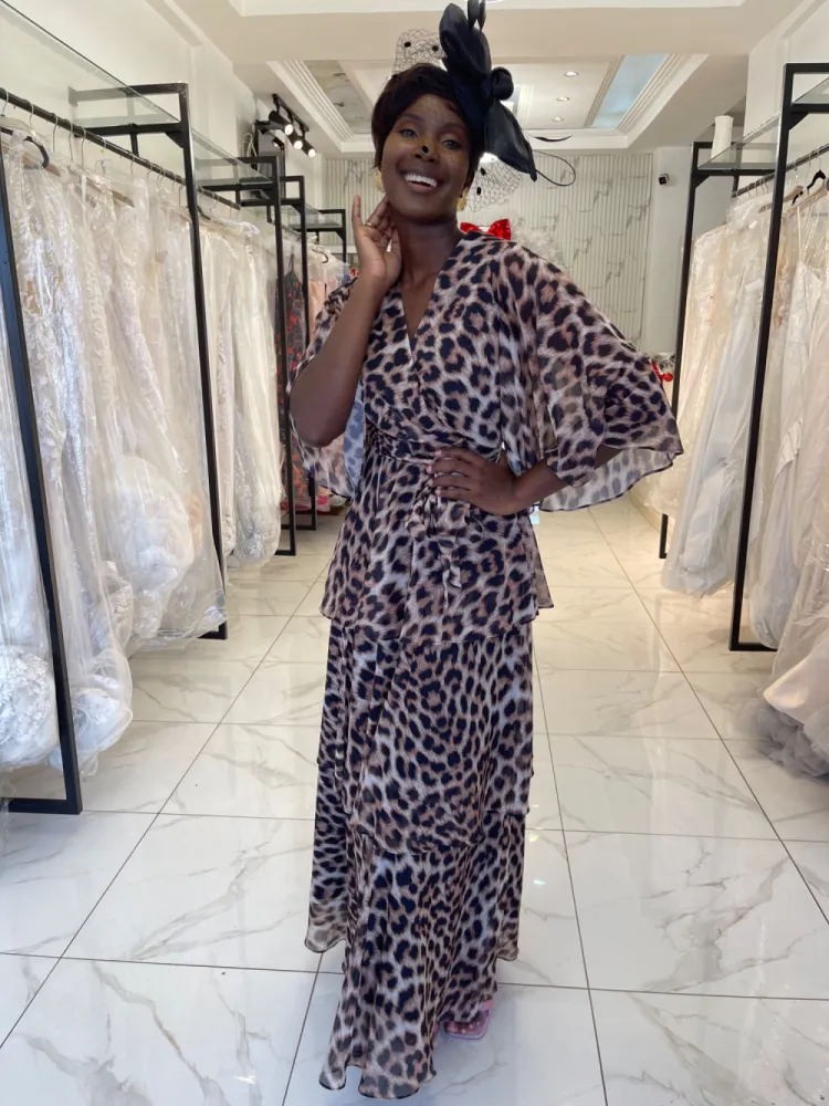 Robe longue panthère cache cœur à étage