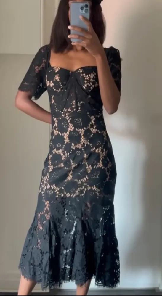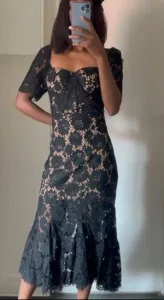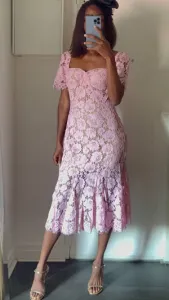 Robe midi en dentelle avec petites manches Noire/ rose...