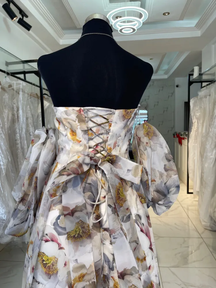 Longue robe à motif fleuris MORE-MURE avec laçage dans le dos...