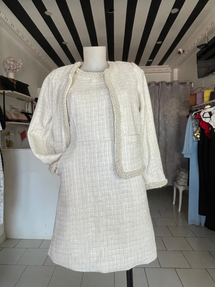 Robe à perles veste en tweed