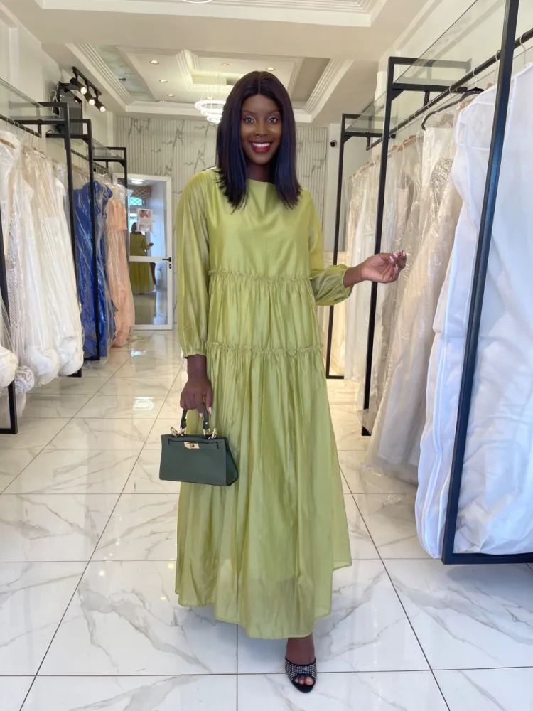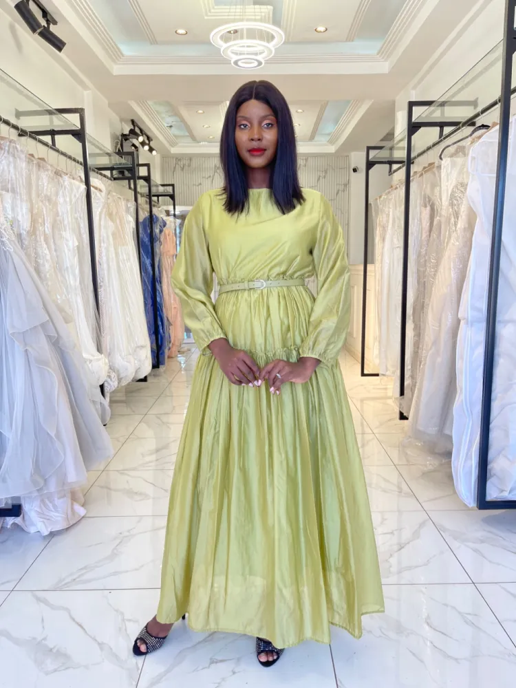 Robe longue vert olive avec longue manches