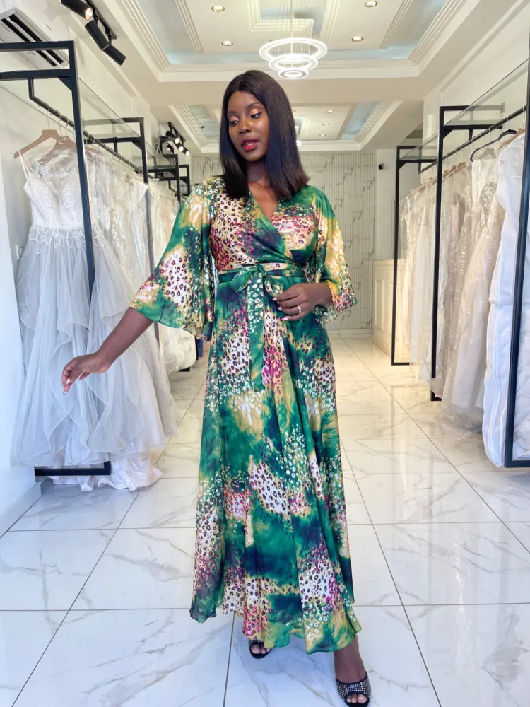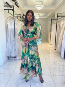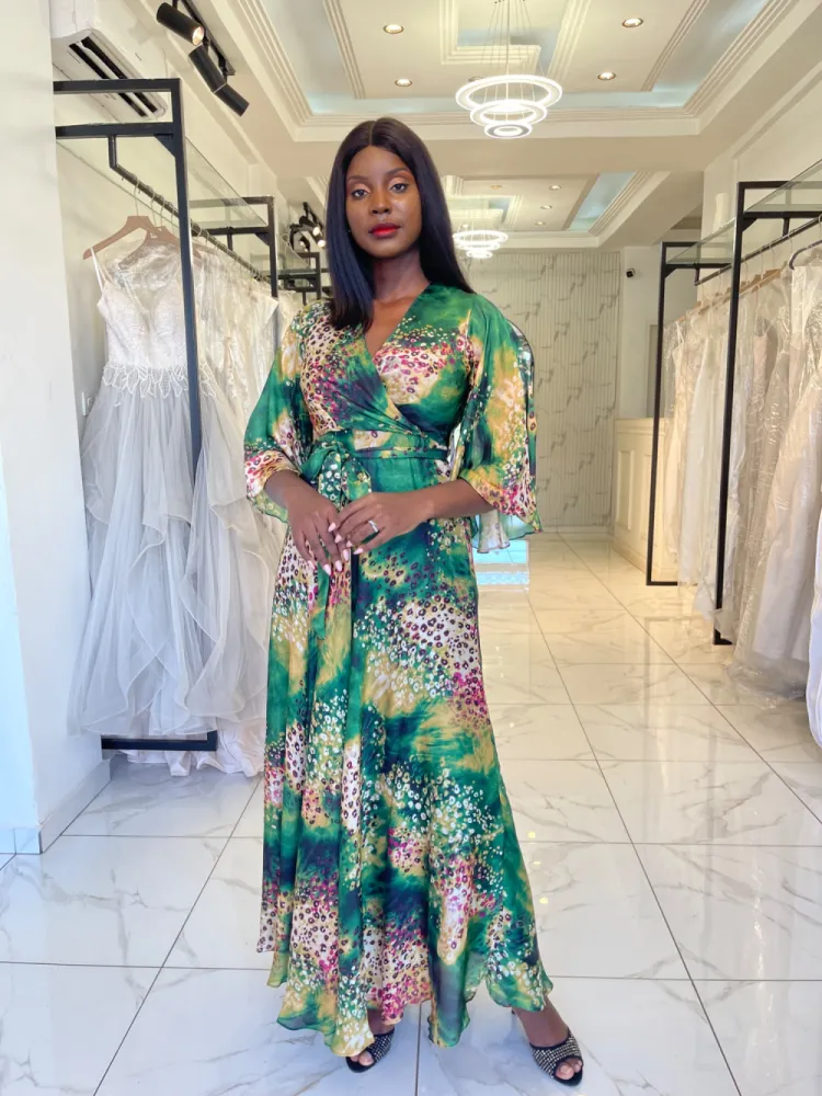 Robe longue verte à volants
