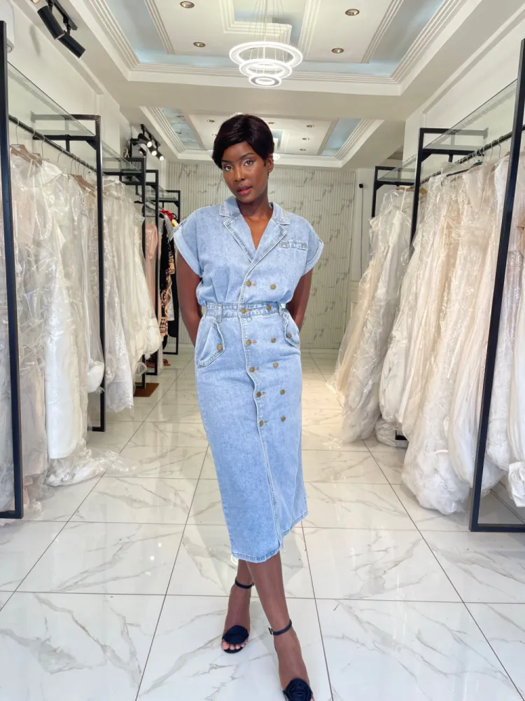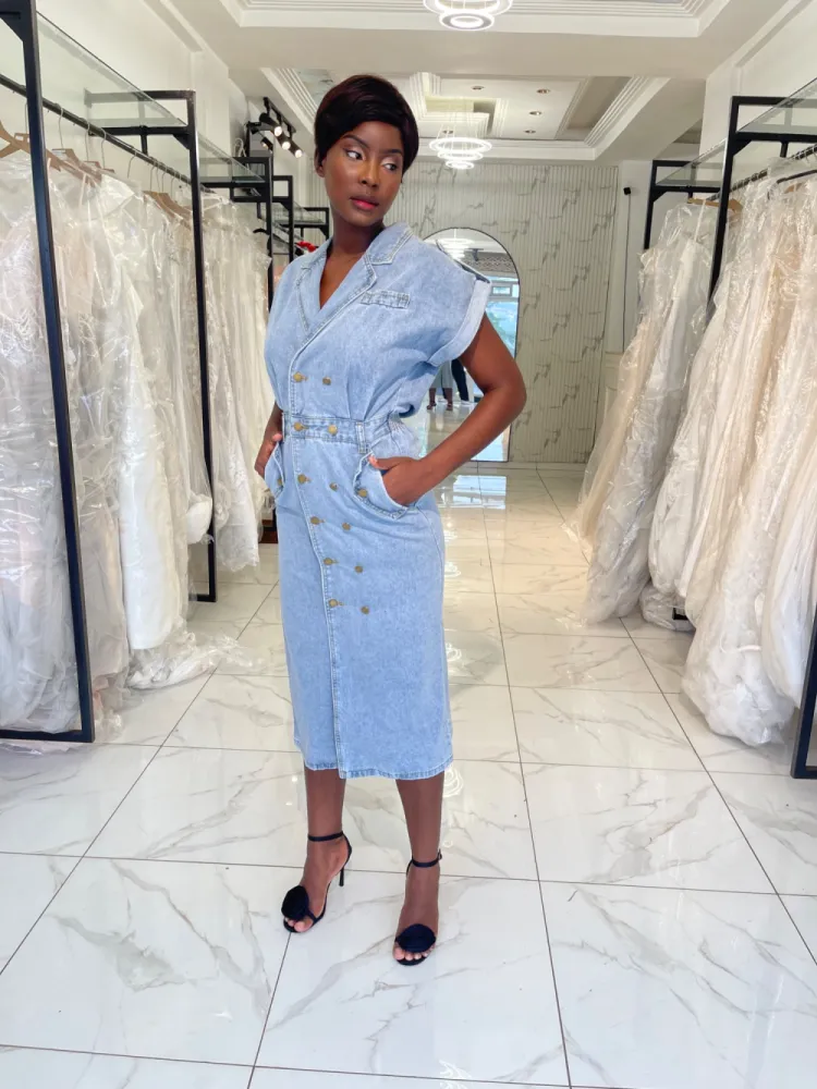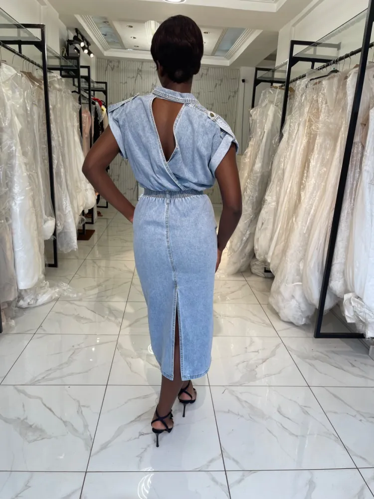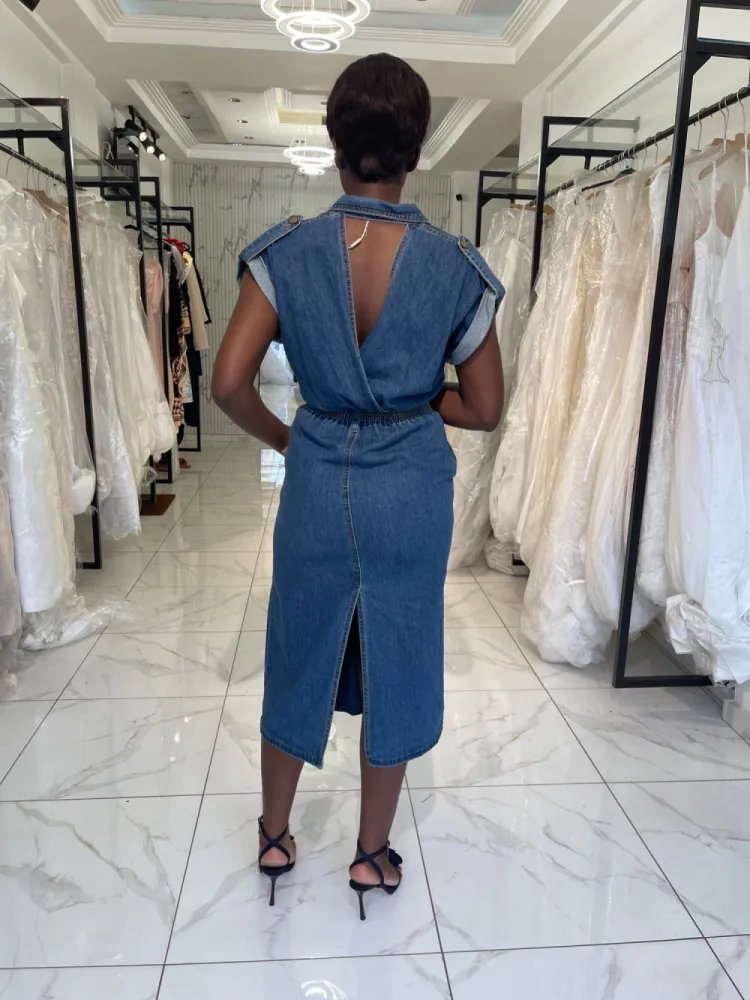 Robe jeans droite avec dos nu