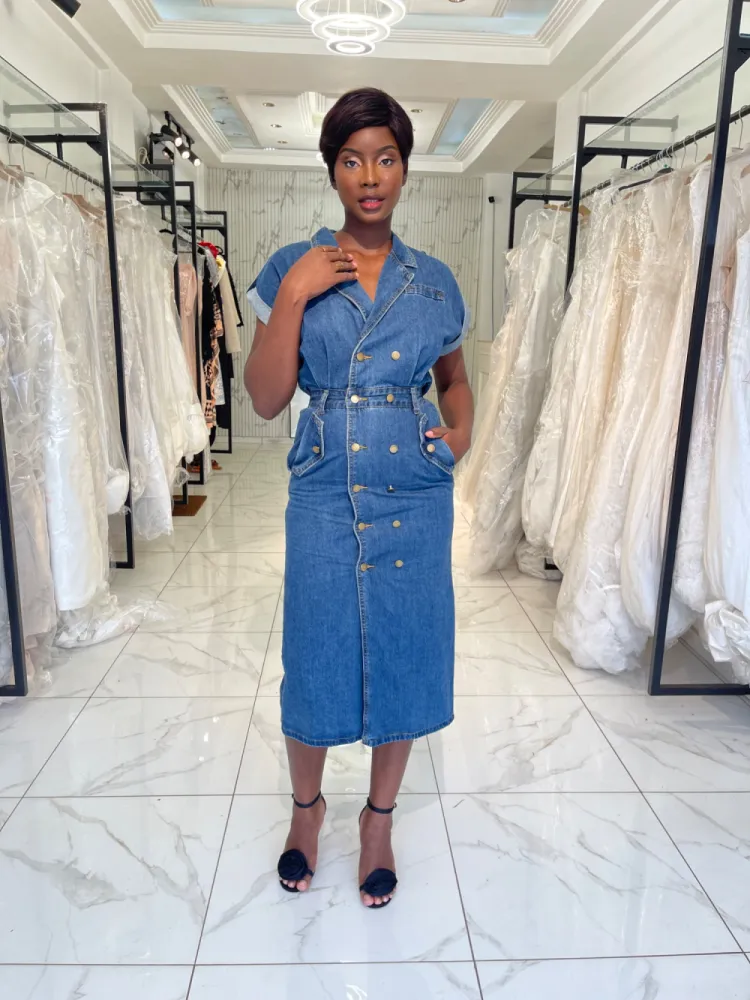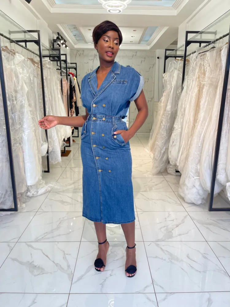 Robe jeans droite avec dos nu...