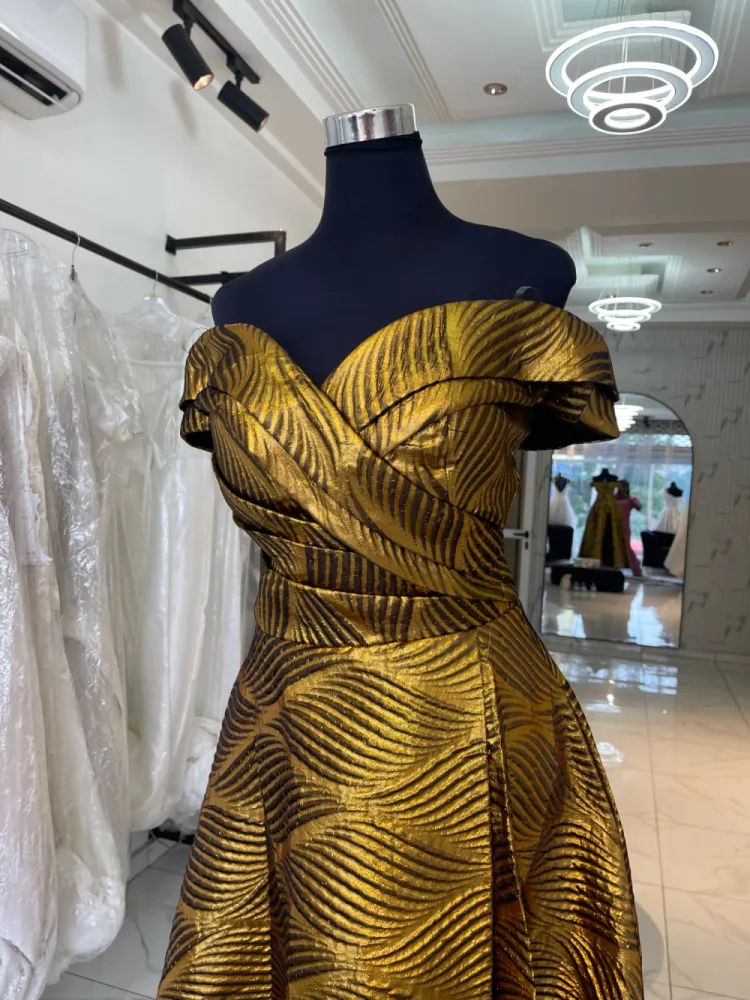 Robe de cocktail longues effet metalisé , manches bateaux...