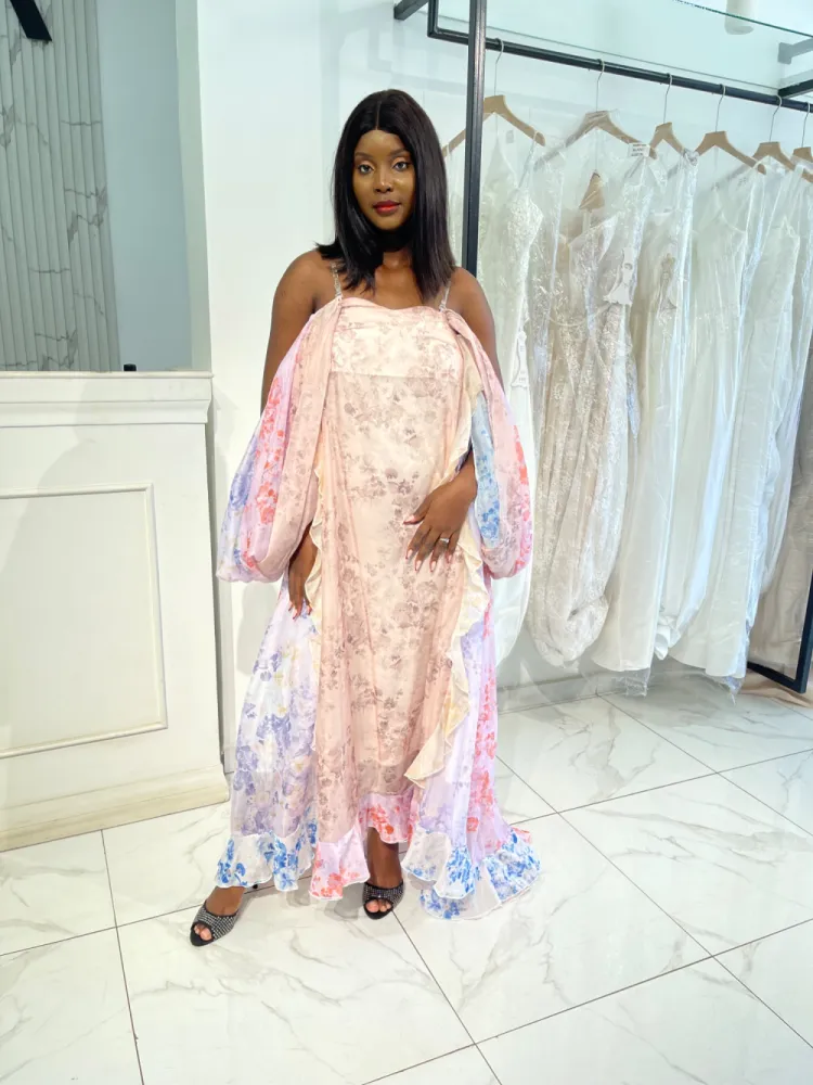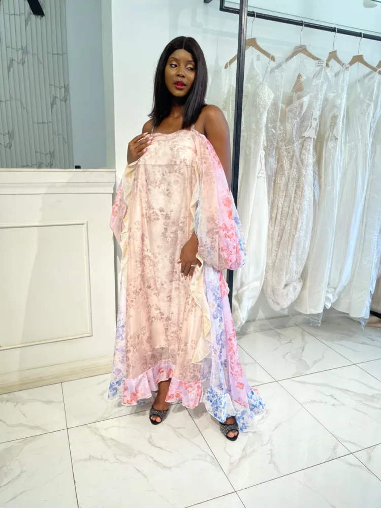 Robe tunique col bateau multicouleur courte devante longue derrière
