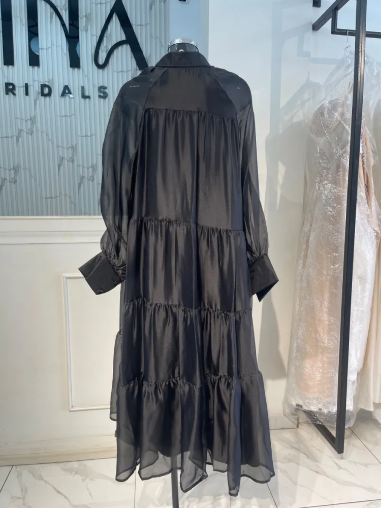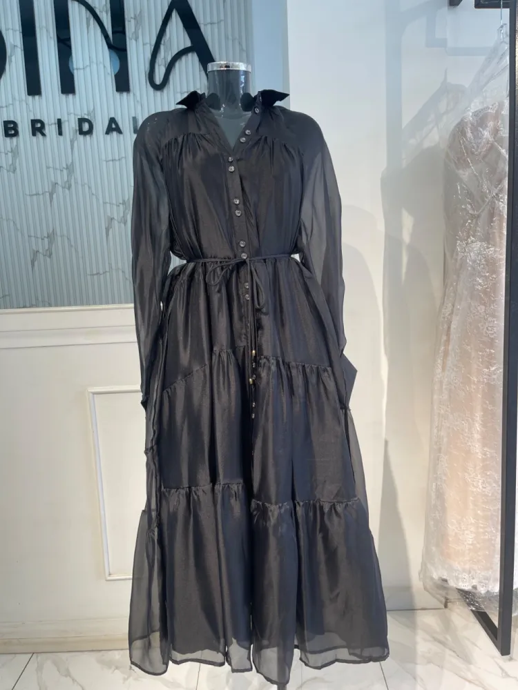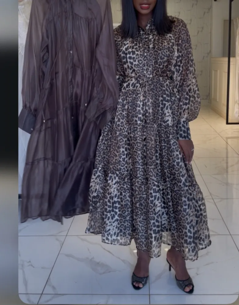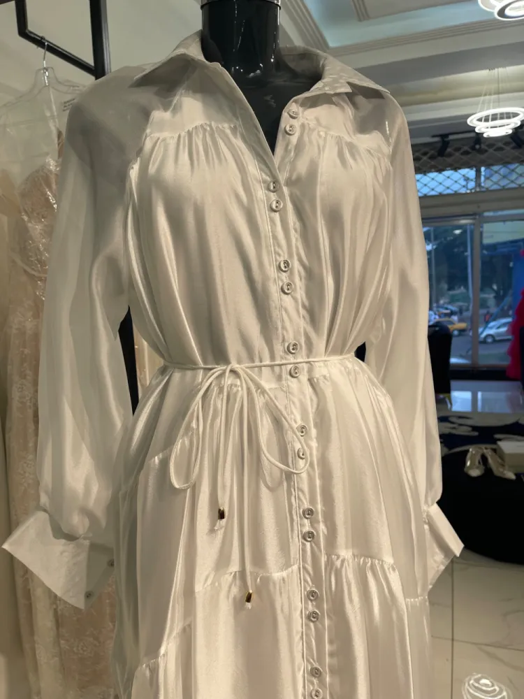Robe fluide large avec longues manches et petite corde en guise de ceinture...