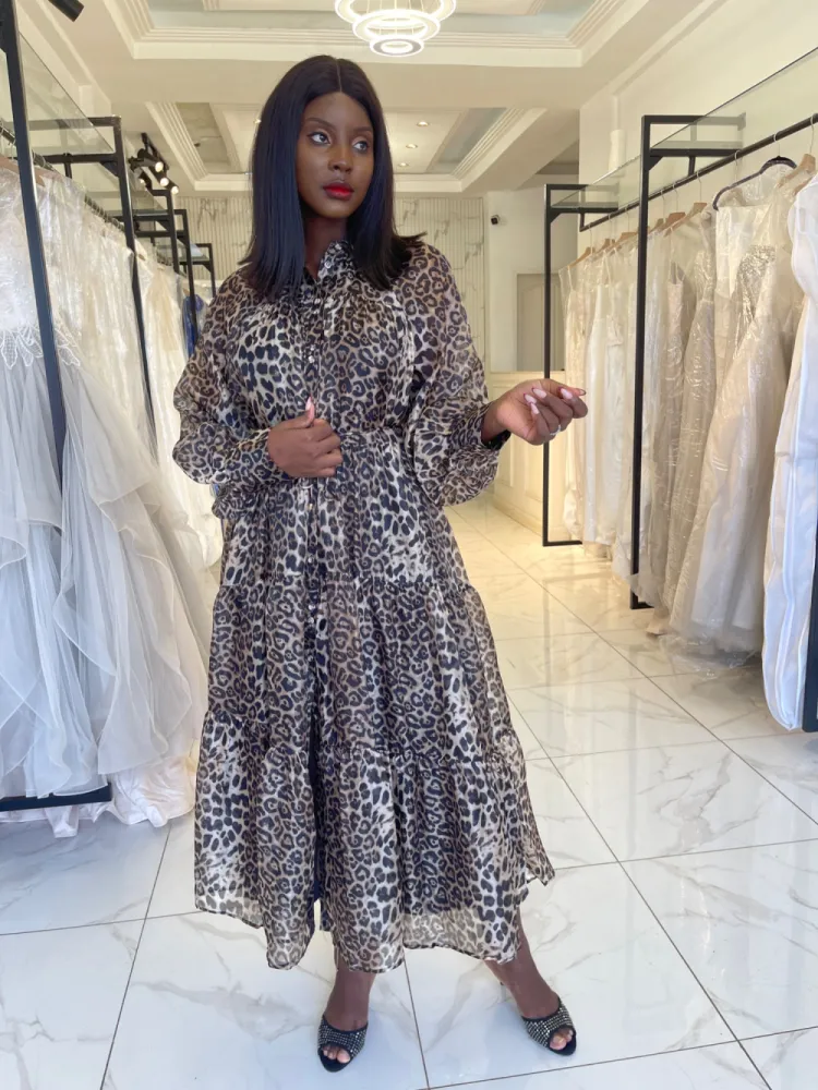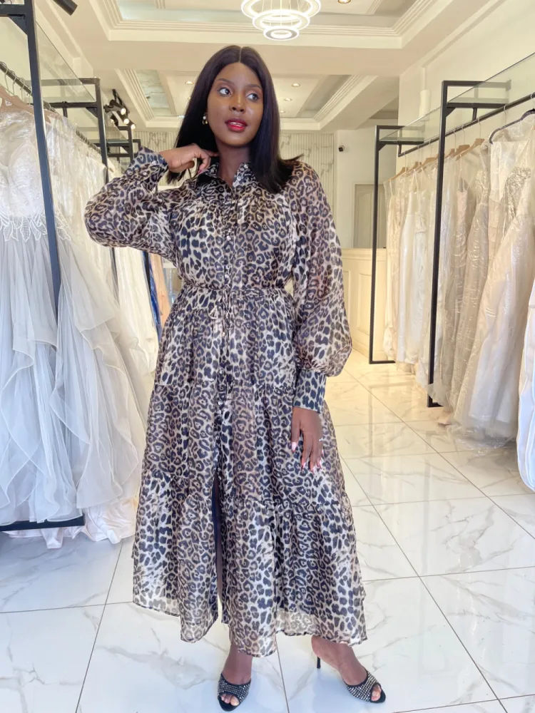 Robe fluide large avec longues manches et petite corde en guise de ceinture
