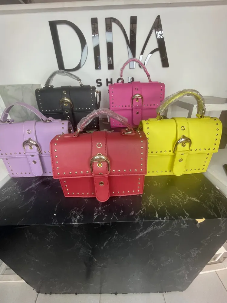 Sac à main style cartable design clouté avec une boucle de ceinture...